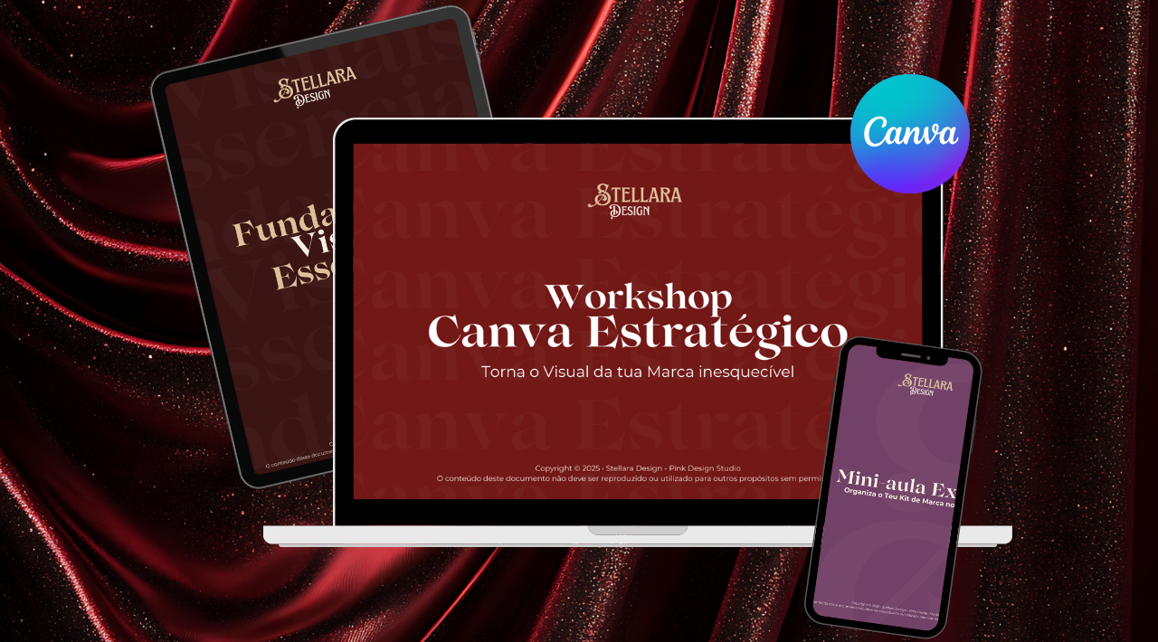 Acesso ao Workshop Canva Estratégico, onde aprendes a criar a tua marca e posts para as redes sociais, enquanto aprendes truques no Canva.